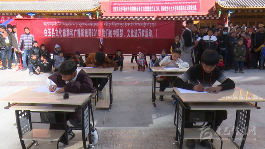 穿青色藏裝的少年仁真奔跑而來(lái)