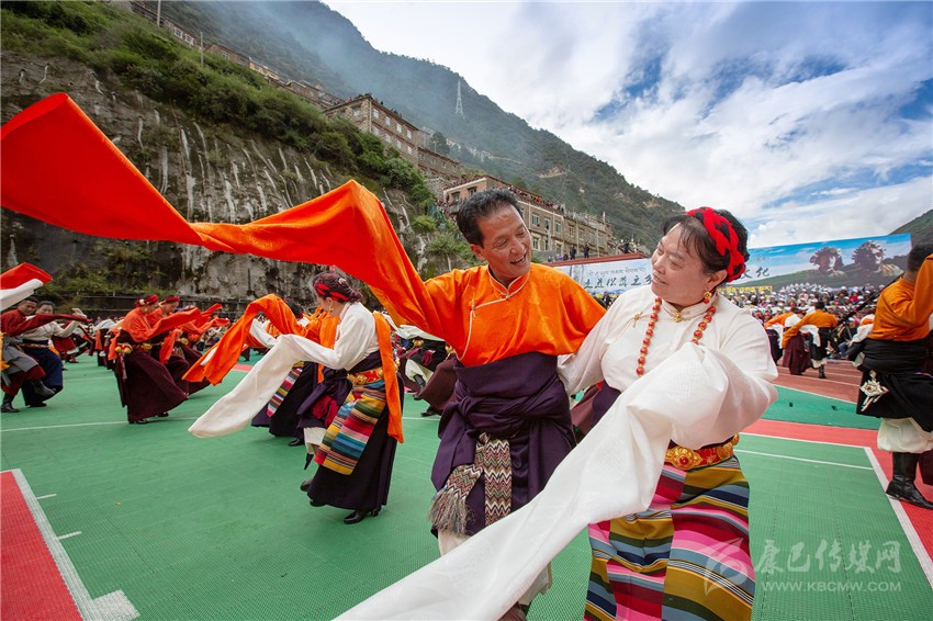 而該縣康巴漢子藝術(shù)團(tuán)帶來的原創(chuàng)舞蹈《連心路》,以歌伴舞加上情景劇的方式,生動(dòng)再現(xiàn)了“第一書記”帶領(lǐng)杰珠村群眾成立鍋莊舞蹈隊(duì),通過挖掘宣傳推廣傳統(tǒng)文化,讓全村走上脫貧致富之路的歷程,贏得了全場觀眾一致贊譽(yù)。