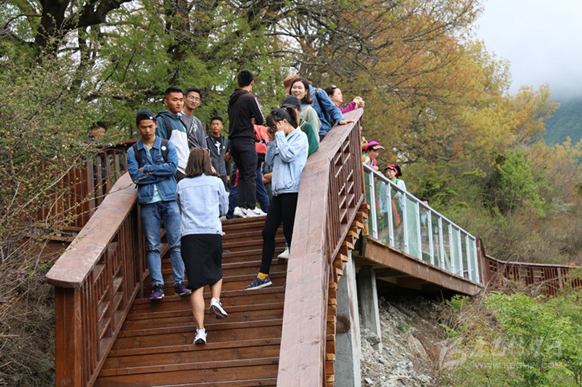 木棧道是休閑圣地又一特色,棧道長(zhǎng)度達(dá)2800余米,猶如長(zhǎng)龍盤旋,并且棧道全用俄羅斯進(jìn)口的防腐木板鋪制而成,兼具實(shí)用性和美觀性,走在棧道上,清新的木香味撲面而來(lái),順著棧道走到山頂,便能充分欣賞“大渡河第一彎”的氣勢(shì)。