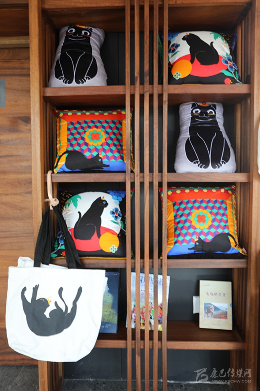 12月16日,在甘孜州最“年輕”的國家4A級(jí)旅游景區(qū)——鄉(xiāng)城青德藏鄉(xiāng)田園景區(qū),記者看見繪制著“香巴拉貓”各式姿態(tài)和各色造型的文創(chuàng)產(chǎn)品:一只只通體黝黑、須髭分明、豎瞳開闔的“貓”或在抱枕上呆萌端坐,或在布袋上悠游嬉戲,或在胸針上不卑不亢,或在靠墊上舒展懶腰······