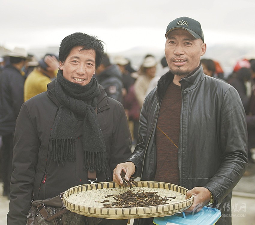 來自拉波鄉(xiāng)的商人曲珠他,在采集點(diǎn)的臨時(shí)交易點(diǎn)將斯郎單珍一家采集到的蟲草盡數(shù)收購,運(yùn)送至城區(qū)再次交易。5月5日,攝制組跟隨著這些“還沾著泥土的蟲草”,來到攝制組在理塘縣城東新區(qū)蟲草交易市場,拍攝記錄下2019年“頭草”的交易情況,并捕捉到了藏區(qū)特有的蟲草交易“袖筒議價(jià)”場面。