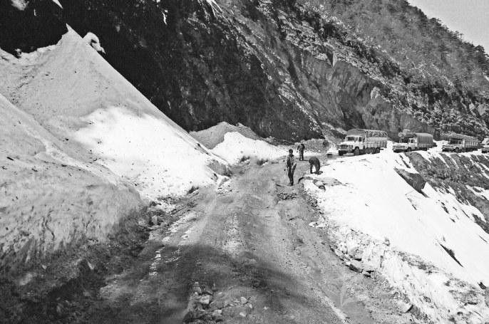 這是對(duì)二郞山公路的真實(shí)寫(xiě)照,詮釋這歌謠的,不僅有沿途祭祈亡靈的經(jīng)幡,還有那些橫臥荒草溝澗的車輛殘骸。
