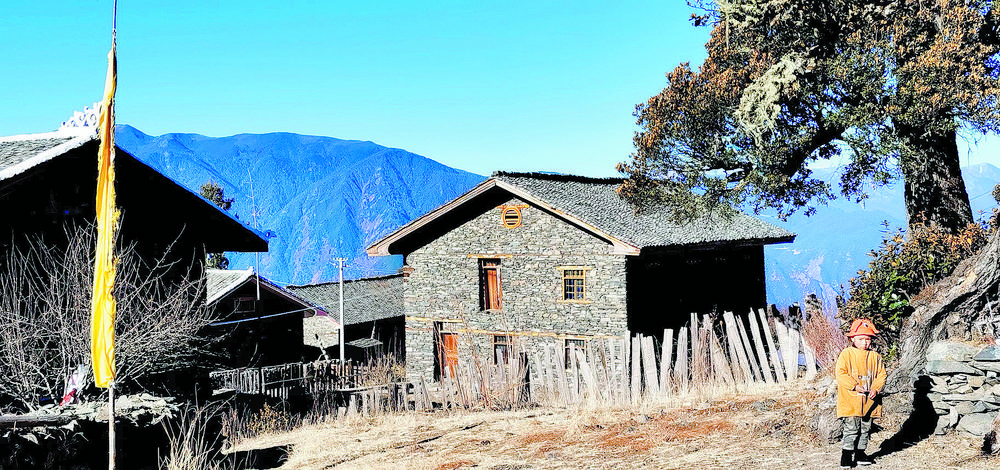 洛克所經(jīng)過的地方就是三巖龍鄉(xiāng)的猛董,這是一處鮮為人知的隱世天堂。猛董有“五絕”,即“山、湖、谷、寨、寺”,山是被當(dāng)?shù)厝诵欧顬樯裆降柠湹刎暩拢湹兀卣Z為珍珠),湖是神山腳下的麥地措(珍珠湖),谷是雅礱江谷地的藍(lán)月山谷,寨是猛董“后花園”的普米寨子,寺是修建于明清時(shí)期的猛董古寺。