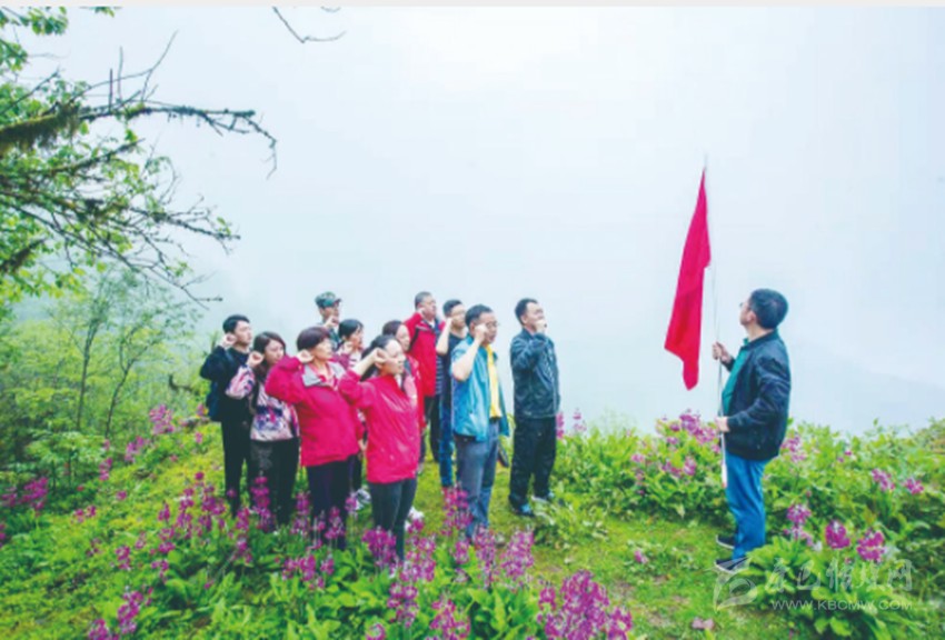 “激戰(zhàn)飛越嶺,千古留芳名。”埡口海拔2800多米,山嵐氤氳,雖然有些涼意,但我們熱血沸騰、我們?cè)谶@里擎旗列隊(duì),向英勇無(wú)畏、長(zhǎng)眠于此的革命先烈致敬。同時(shí)握拳宣誓,重溫入黨誓詞。
