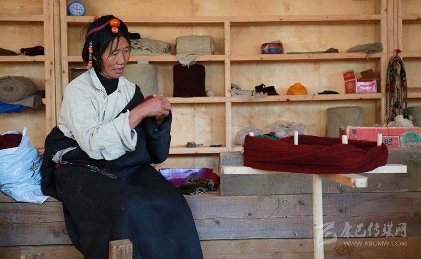 “庫”,這層細(xì)軟的底絨被表層粗糙的牦牛毛所覆蓋,且本身細(xì)長彎曲,無法用剪刀方便地剪下,故而只能手工采集。從每年春天采集牦牛、羊絨,到捻成線,到染成不同顏色,再到織成一匹布,整個過程全由扎西巴姆和她帶領(lǐng)的幾個藏族婦女手工完成,全部學(xué)會這門技術(shù)需要3—4年,現(xiàn)在麥宿只有4人全部掌握。但與這費力耗時的工藝形成殘酷對照的是,手工織物在機器快速生產(chǎn)的現(xiàn)代社會,市場經(jīng)營可謂舉步維艱。雖然工巧明系創(chuàng)立的平臺專門收購編織班做出來的產(chǎn)品,但購買的人并不多,編織班創(chuàng)建至今,所得收益只夠勉強維持平衡。