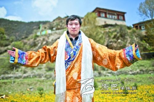 第一次穿上金色的藏裝,戴上潔白的哈達(dá),感覺(jué)很奇妙,中國(guó)政法大學(xué)的趙丁在藍(lán)天白云下為自己留一張影。