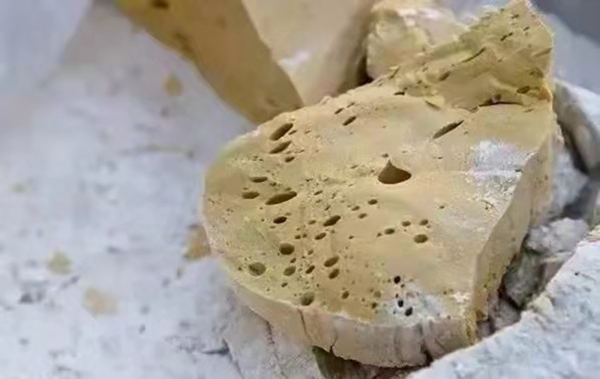 只聽(tīng)大伯一聲大喝“出糖”,便有人迅速端過(guò)鋪有一層熟面粉的簸箕,大伯退到一旁休息,二伯眼疾手快拿起瓢便把黏稠的糖漿往簸箕中舀。