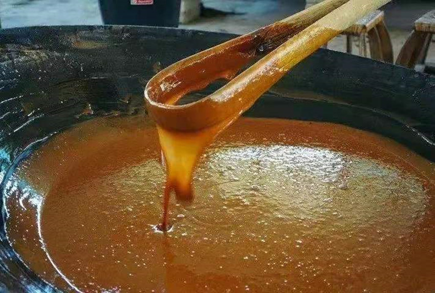 姐姐做好了午飯,我也完成了燒火任務(wù)。母親退掉了灶里燃燒的柴火,留下猩紅的火炭,將一瓢早已準(zhǔn)備好的麥芽漿倒入煮好的漿糊中,加水?dāng)嚢杈鶆蚝箪o置。直到吃完午飯,我們即將出發(fā)去大伯家時(shí),我看到鍋里的漿糊上面析出一層透明的液體。此時(shí)母親又點(diǎn)燃了灶火繼續(xù)熬煮兩鍋漿糊,煮開(kāi)后進(jìn)行過(guò)濾。再將濾出的糖水倒入洗凈的大鍋中熬煮。