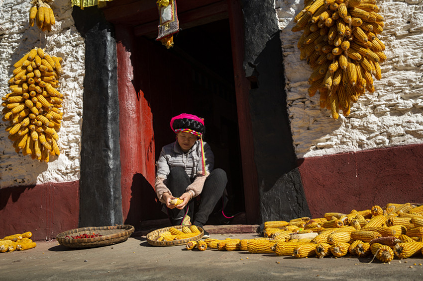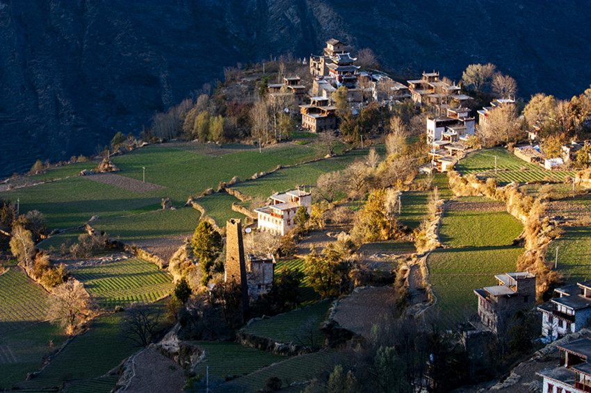 丹巴,無(wú)論在深山峽溝,還是在田間林園,藏房路口隨處可見(jiàn)高大的古碉以及殘?jiān)珨鄩Φ牡镏愤z跡,這一切蘊(yùn)含著多么大的勞動(dòng)量。殘酷的年代,先民們赤腳背石,手抓繩索,一石一泥,一檁一椽,日復(fù)一日,年復(fù)一年,一點(diǎn)點(diǎn)背上去,一寸寸砌起來(lái)。這樣可敬的古碉,它的每一個(gè)角、每一塊石頭、每一鏟泥巴,都是先民們用汗水所鑄,同時(shí)也寫下了藏民建筑史上光輝的歷史。