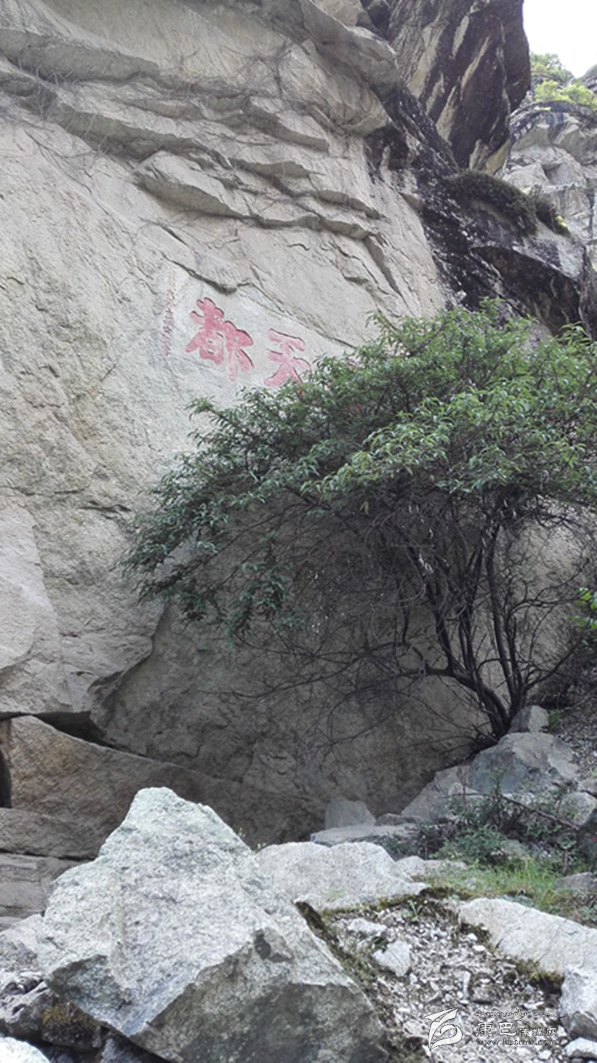 前些年,康定在此處修建水電站及公路,大量石塊隨意處置,沿路堆下,“小天都”三字幾被覆蓋。據(jù)當?shù)厝苏f,以前此三字高懸半空,現(xiàn)已可以攀巖而上。