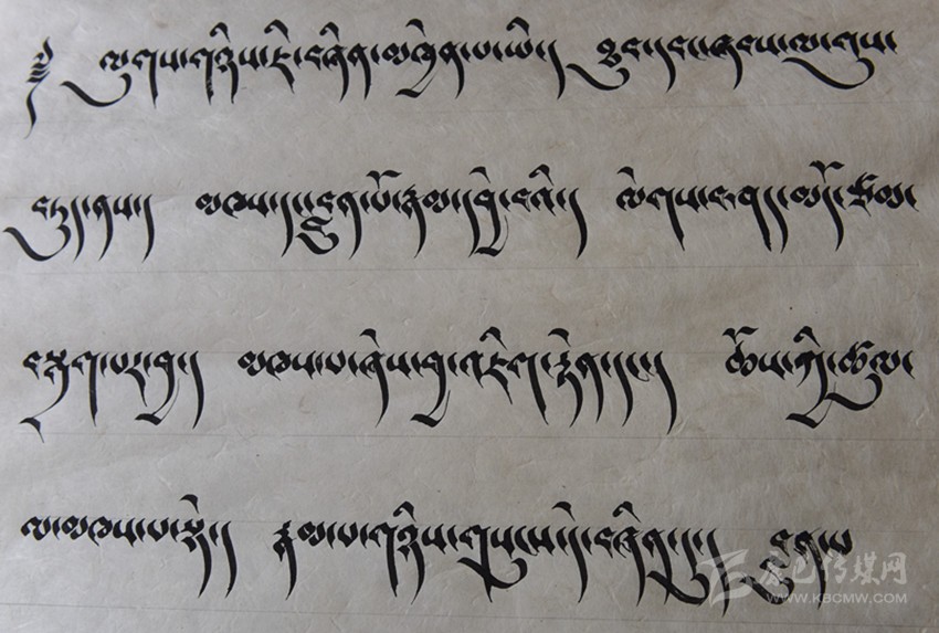 談到藏文書法作品,昂旺曲批喜歡用諸如“淳樸、干凈、善良”的字眼形容藏文書法作品的風(fēng)格?!耙粋€字就是一個人,字有肉也有骨頭。”這是昂旺曲批對“德珍派”書法的理解,在昂旺曲批眼中,藏文字都是有生命的,需要寧心靜氣方能通過手中的筆尖,彼此呼應(yīng)。