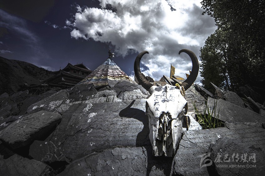 牦牛作為神圣的寶物,在藏區(qū)許多圣山、圣湖也賦予牦牛一種神性。西藏著名雅拉香布圣山、崗底斯神山、康區(qū)的雅拉圣山,山主為騎白色神牦牛的武士。甚至藏傳佛教儀軌中也有牦牛,著名護(hù)法吉祥天女為牛面護(hù)法,寺院金剛舞中有牛頭面具。洛桑卻晉大師所著的“六臂金剛儀軌吉祥天母酬供中云”,黑色長(zhǎng)毛牦牛似烏云翻卷,高豎尖利犄角,發(fā)出十三聲怒吼。它似巍峨的青山,一聲怒吼震顫須彌山,常施乳汁皆意足,飄逸尾巴似雨后云朵。又如怙主群主儀軌中白雅(牦公牛)身有綠玉紋,敬予大自在怙主汝。鵬、獅、虎和牛,敬予男瑜伽神身。
