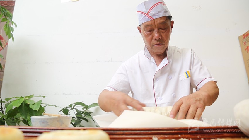 具體制作步驟分為做餡、起酥、做點(diǎn)心皮、制作酥皮、揉搓成坯、烤制等六道工序。其最具特色的“酥皮”,烹制技藝尤為精細(xì),需經(jīng)起酥、制皮、制酥皮多個(gè)環(huán)節(jié),在制作中,首先用精制面粉加熬制好的豬油適合比例混合后反復(fù)揉搓,并制成長方形面團(tuán)備用;隨后用面粉加豬油,加入沸水晾曬至稍低溫度時(shí)反復(fù)鞣制一個(gè)小時(shí),直到拉扯面團(tuán)不粘手且發(fā)出清脆的響聲;最后還要將醒發(fā)的面團(tuán)分為五錢重,包裹三錢的“起酥”,搟至長條形,然后裹成圓柱形,左右對折,一層層折疊、壓緊,再舒展。這樣重復(fù)幾次,能形成幾十層,酥皮薄如蟬翼,沾水即化。