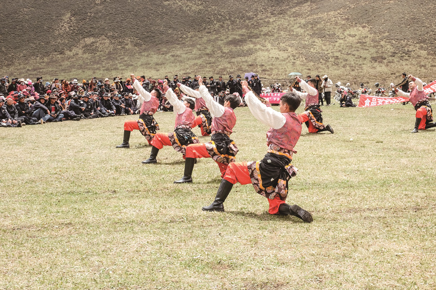 這個演出隊匯集了當(dāng)時縣上最優(yōu)秀的踢踏舞者,在那里我認(rèn)識了陳幫文、洛呷、伍伯康、貢布、絨波、俄洛啟加等,那真是一批踢踏舞的精英,每當(dāng)音樂響起,你就看他們那翻飛的腳步如流動的浪花,酣暢淋漓,激情四射。