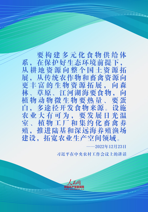 黨的十八大以來,從2015年中央農(nóng)村工作會(huì)議提出“要樹立大農(nóng)業(yè)、大食物觀念”,到黨的二十大報(bào)告提出“樹立大食物觀,發(fā)展設(shè)施農(nóng)業(yè),構(gòu)建多元化食物供給體系”,再到2024年中央一號(hào)文件提出“樹立大農(nóng)業(yè)觀、大食物觀,多渠道拓展食物來源,探索構(gòu)建大食物監(jiān)測(cè)統(tǒng)計(jì)體系”,以習(xí)近平同志為核心的黨中央對(duì)大食物觀的闡釋不斷豐富和發(fā)展。