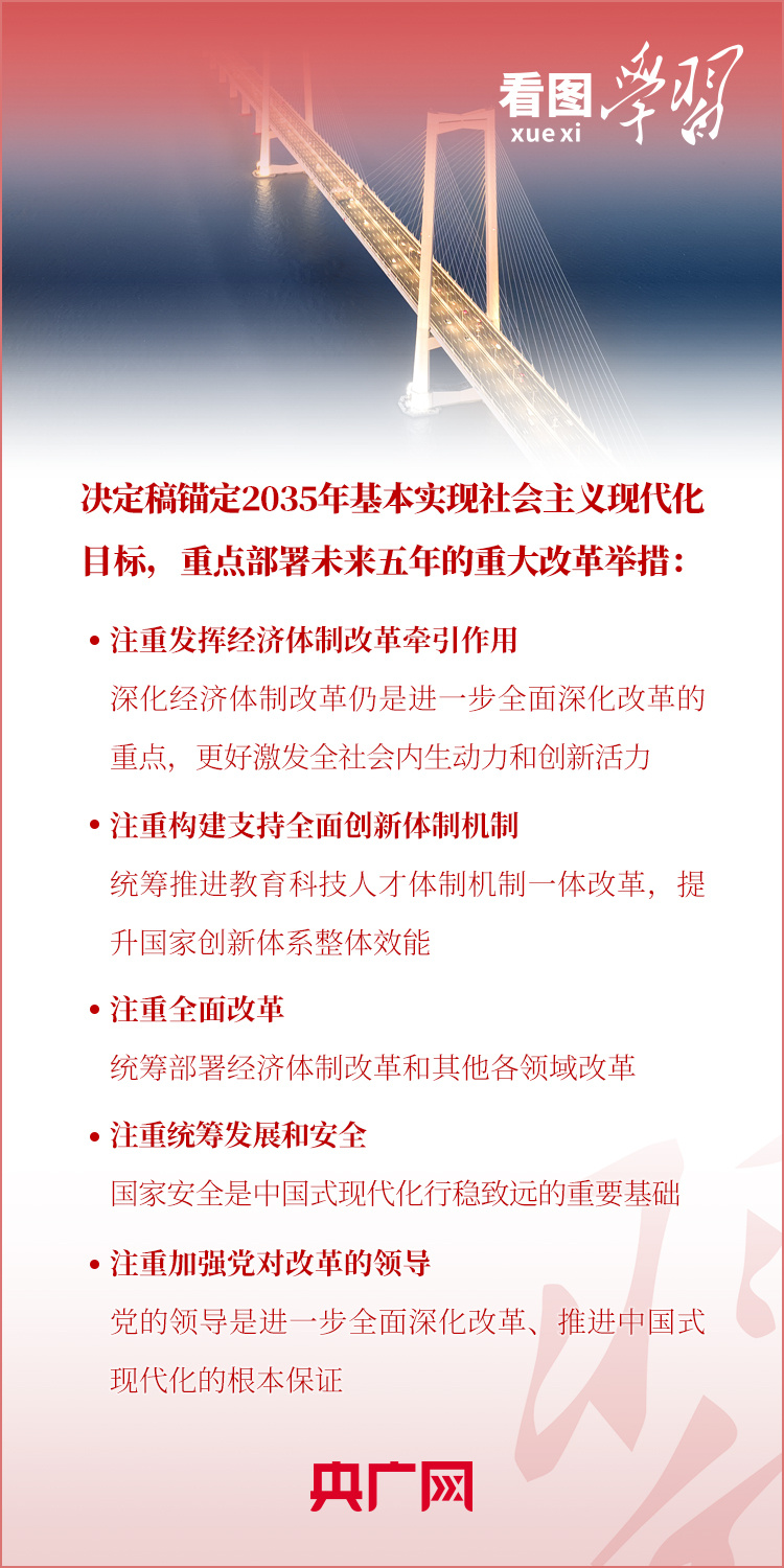 從征求和確定全會(huì)議題到起草文件、深入調(diào)查研究、廣泛征求意見(jiàn)、開(kāi)展專題論證、反復(fù)討論修改,習(xí)近平總書記指出,決定稿錨定2035年基本實(shí)現(xiàn)社會(huì)主義現(xiàn)代化目標(biāo),重點(diǎn)部署未來(lái)五年的重大改革舉措?!拔鍌€(gè)注重”成為《決定》內(nèi)容擺布鮮明特點(diǎn)。一起來(lái)學(xué)習(xí)!