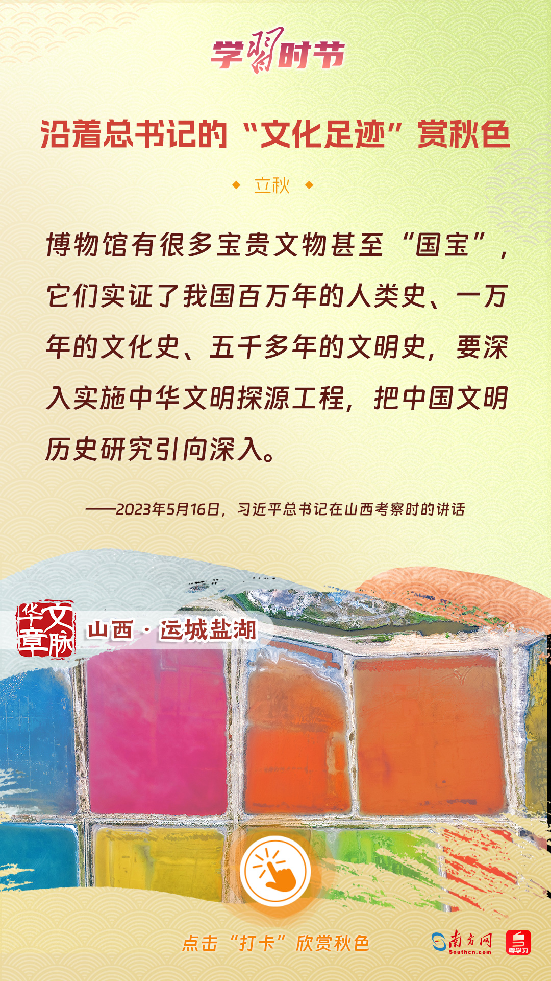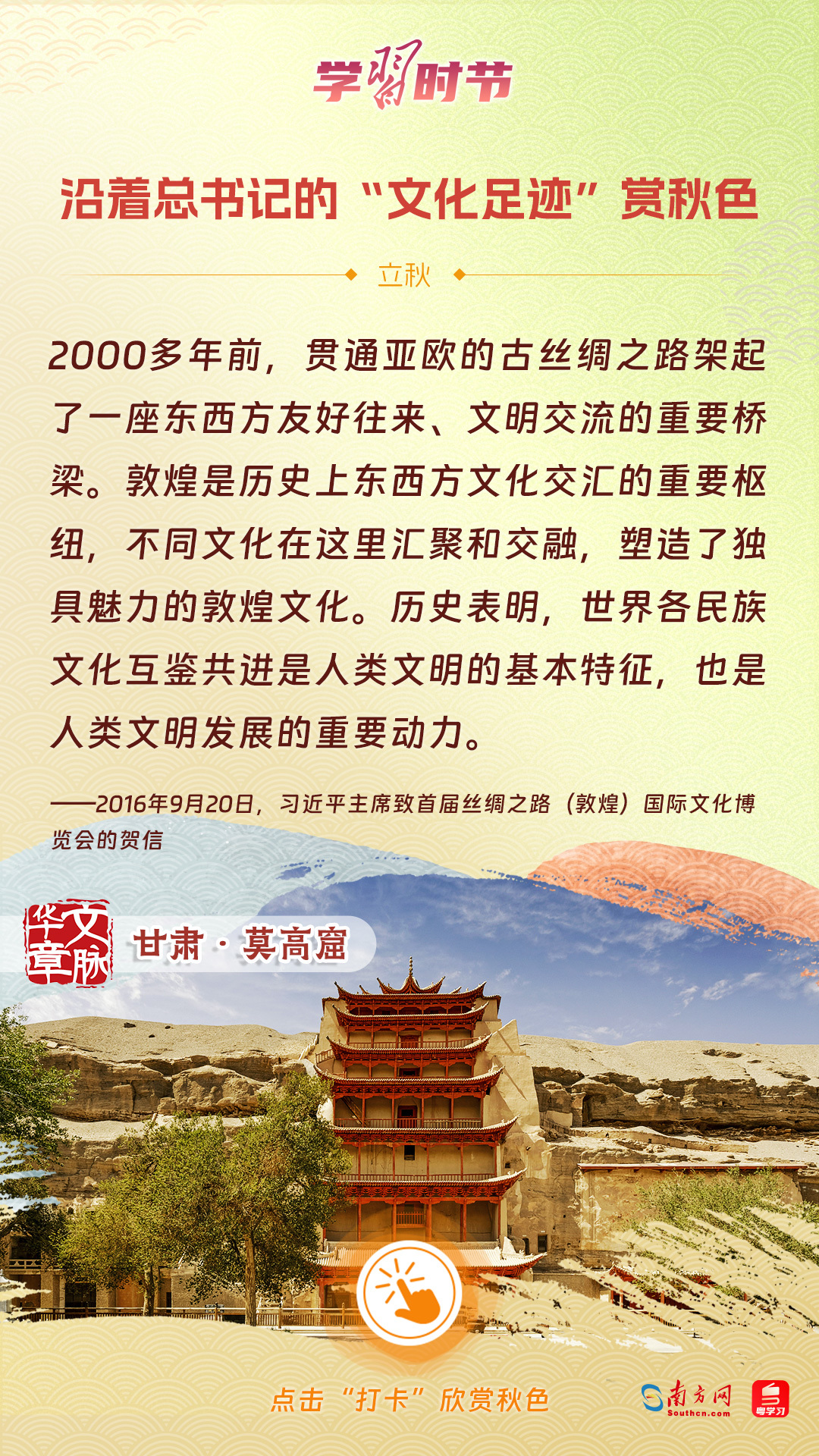 立秋之際,讓我們一起跟隨習(xí)近平總書記的足跡,學(xué)習(xí)習(xí)近平總書記關(guān)于文化建設(shè)的重要論述,感受全國各地文化地標(biāo)古跡的秋意,汲取文化自信的強大力量。