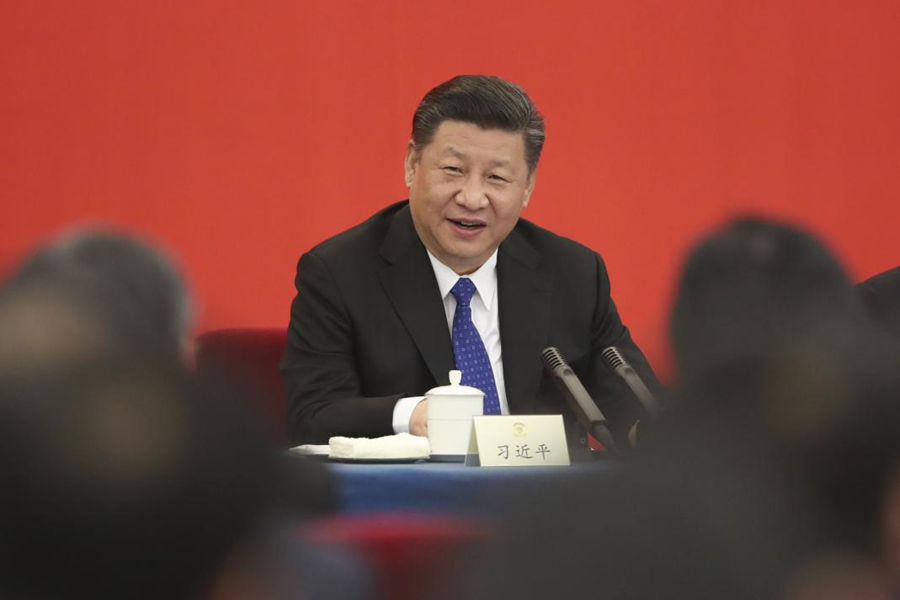 ??2018年3月4日下午,中共中央總書記、國家主席、中央軍委主席習(xí)近平看望參加全國政協(xié)十三屆一次會議的民盟、致公黨、無黨派人士、僑聯(lián)界委員,并參加聯(lián)組會,聽取意見和建議。 新華社發(fā)(盛佳鵬 攝)
