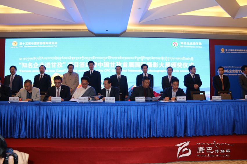本網(wǎng)訊 (記者 秦松 陳雪峰 文/圖) 10月25日,“知名企業(yè)進甘孜”項目簽約暨中國甘孜首屆國際攝影大展頒獎儀式在成都舉行。項目簽約儀式上,我州按照“一優(yōu)先、二有序、三加快”的產(chǎn)業(yè)發(fā)展思路,精心篩選包裝推出了具有一定代表性和廣闊市場前景的148個估算總投資560億元的招商項目,主要涉及旅游業(yè)、文化業(yè)、特色農(nóng)牧業(yè)、中藏醫(yī)藥業(yè)、工業(yè)、服務業(yè)等產(chǎn)業(yè)。邀請國內外知名企業(yè)100余家;簽約項目23個,投資額87.28億元。其中:旅游類9個,投資額41.68億元;能源類5個,投資額32.8億元;農(nóng)牧業(yè)類3個,投資額10.6億元;基礎設施類4個,投資額2.2億元;協(xié)議簽約2個。