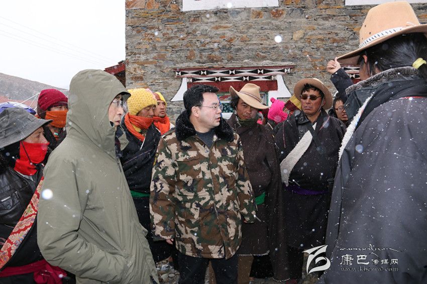 胡昌升頂風(fēng)冒雪看望慰問(wèn)塔公鄉(xiāng)下馬龍村受災(zāi)群眾 。
