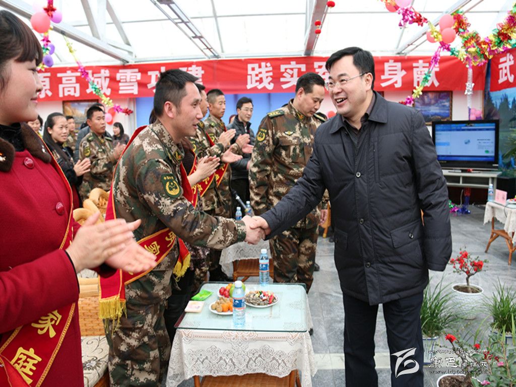 本網(wǎng)訊(記者 張濤 文/圖) 大年初二(2月20日)下午,州委書記胡昌升專程來到武警二支隊(duì)與各位軍人家屬歡聚一堂,共度新春佳節(jié)。代表州委、州政府和百萬甘孜兒女,對來康定過年的35名軍嫂表示熱烈歡迎,對各位軍嫂為甘孜發(fā)展穩(wěn)定和民生所做出的無私奉獻(xiàn)表示衷心感謝,向全州廣大軍屬致以崇高敬意!