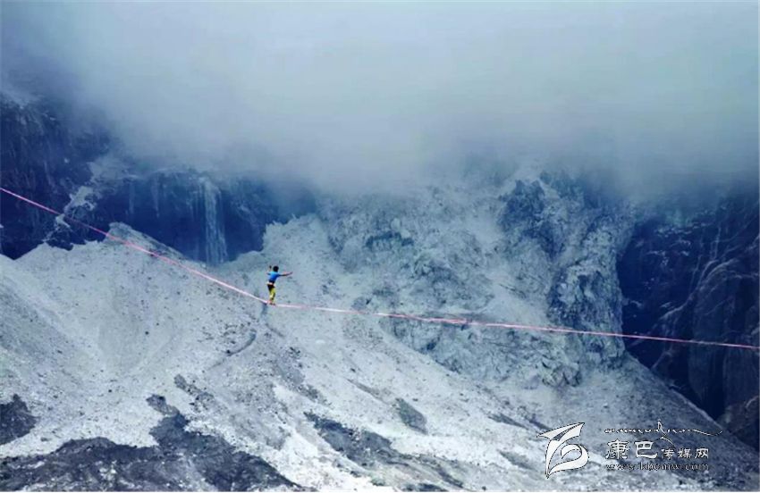 本次高空挑戰(zhàn)線路長約820米,扁帶架設(shè)于海拔高度約3600米的海螺溝冰川之上,所有參賽選手所依仗的“工具”是一根寬度僅有2.5厘米的扁帶,相比于走鋼絲,扁帶充滿彈性,容易左右搖擺、上下顛簸,而且走扁帶沒有平衡桿輔助,難度可想而知。同時海拔高度對高空扁帶運(yùn)動影響極大,所以該類項目一般都在海拔2000米以下的地區(qū)舉行,此次在海拔3600米的冰川上舉行,讓本次扁帶極限挑戰(zhàn)賽成為全球挑戰(zhàn)難度最大、賽事規(guī)格最高的一次比賽。