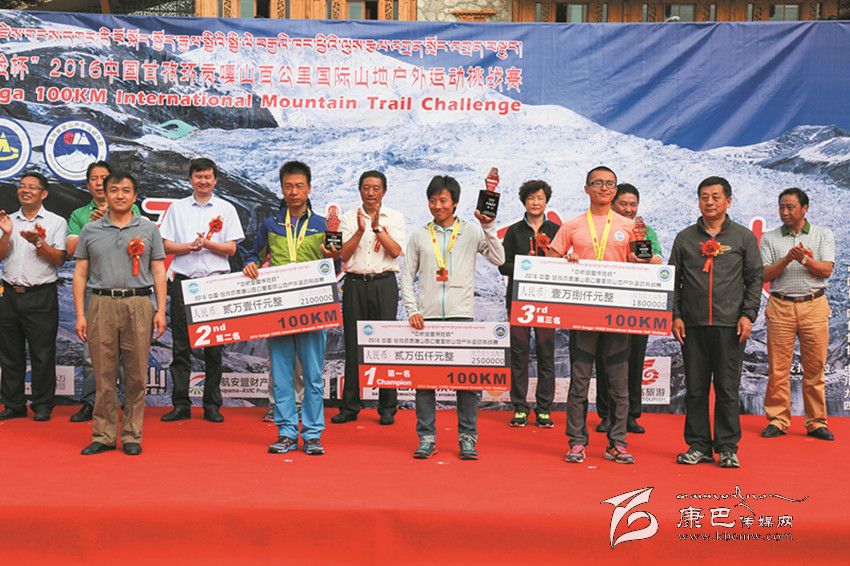 27日凌晨5時,參賽選手從康定情歌廣場出發(fā)后,運動員們不畏艱險,你追我趕,各顯神通,拼盡全力,最終完成了50公里和100公里的賽程。經(jīng)過激烈的角逐,實力強勁的運艷橋以13小時零48秒的成績將男子組100公里冠軍獎牌收入囊中,姚妙以14小時39分32秒的成績獲得女子組100公里冠軍;50公里男子組、女子組冠軍分別被明定邦和牛麗華摘取,成績分別是5小時38分12秒和6小時58分38秒。閉幕式現(xiàn)場,賽事組委會為獲得各項賽事前三名的選手頒發(fā)了獎金、獎杯與獎牌。