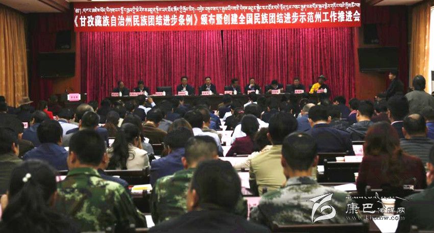 本網(wǎng)訊(記者 楊杰 文/圖)9月2日下午,我州召開《甘孜藏族自治州民族團結(jié)進步條例》頒布暨創(chuàng)建全國民族團結(jié)進步示范州工作推進會,主要任務是貫徹落實8月1日頒布實施的《甘孜藏族自治州民族團結(jié)進步條例》,表彰命名全州第三批民族團結(jié)進步示范單位,總結(jié)交流示范州創(chuàng)建工作經(jīng)驗,安排部署今后一個時期的民族團結(jié)進步示范州創(chuàng)建工作。