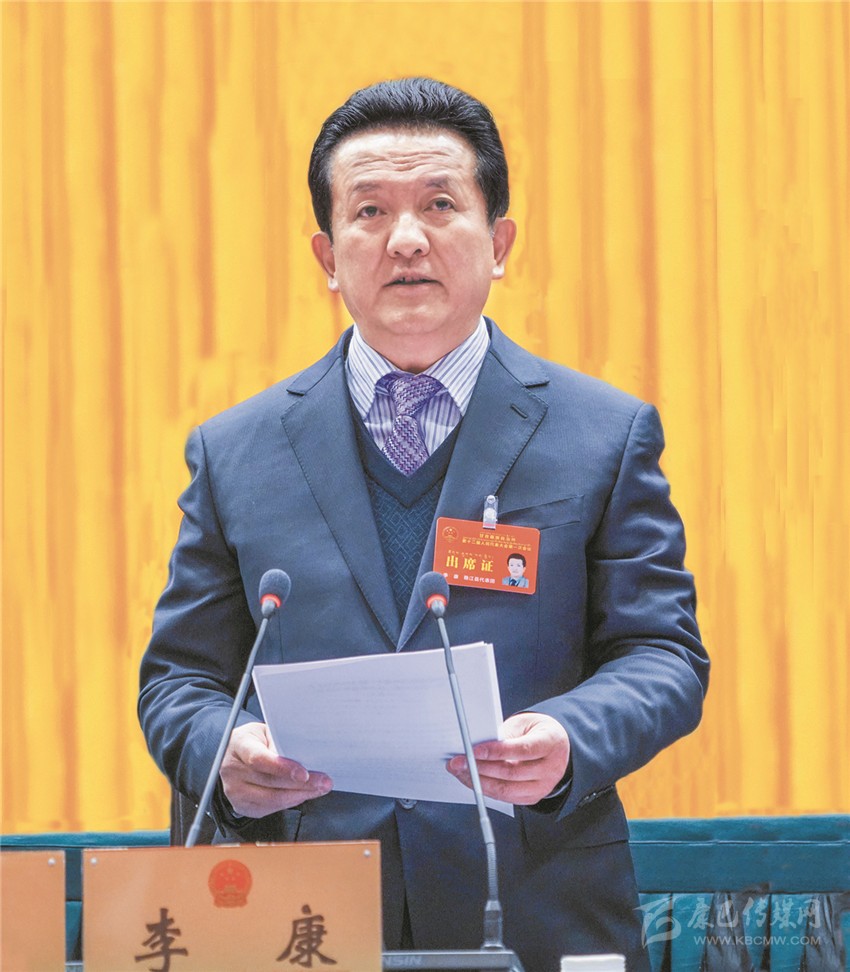 肖友才作政府工作報(bào)告。(本網(wǎng)記者 王明陽 張兵 攝)