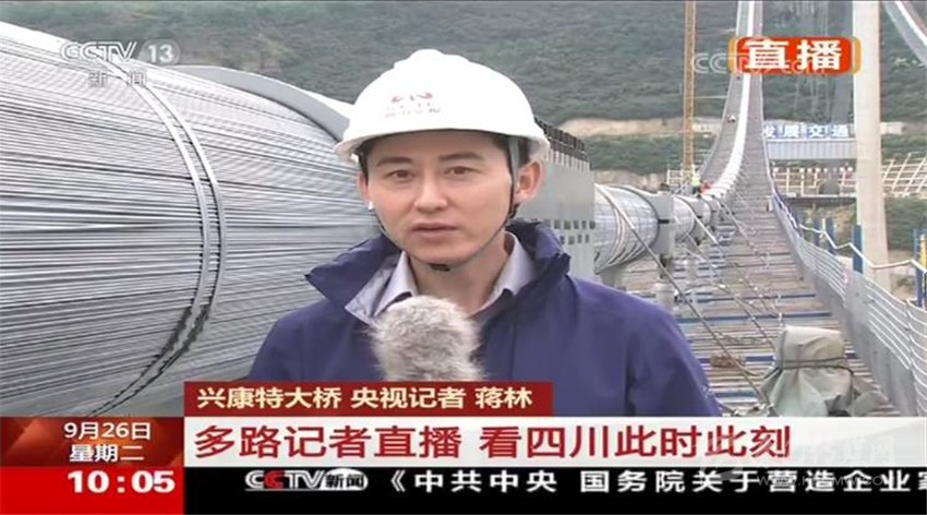 蔣林從興康特大橋建設(shè)現(xiàn)場(chǎng)發(fā)回直播報(bào)道
