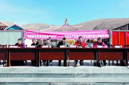 當(dāng)天,州委群眾宣講團(tuán)成員分三組分赴尼斯鎮(zhèn)、熱打鄉(xiāng)、水洼鄉(xiāng)和正斗鄉(xiāng)開(kāi)展十九大精神宣講。宣講員們緊扣“不忘初心、牢記使命”的主題,圍繞群眾最關(guān)心的精準(zhǔn)扶貧、醫(yī)療救助、義務(wù)教育以及愛(ài)國(guó)守法、依法治國(guó)等方面向群眾進(jìn)行精彩宣講。接地氣的宣講贏得群眾陣陣掌聲,講到精彩處群眾還為宣講員敬獻(xiàn)哈達(dá)。