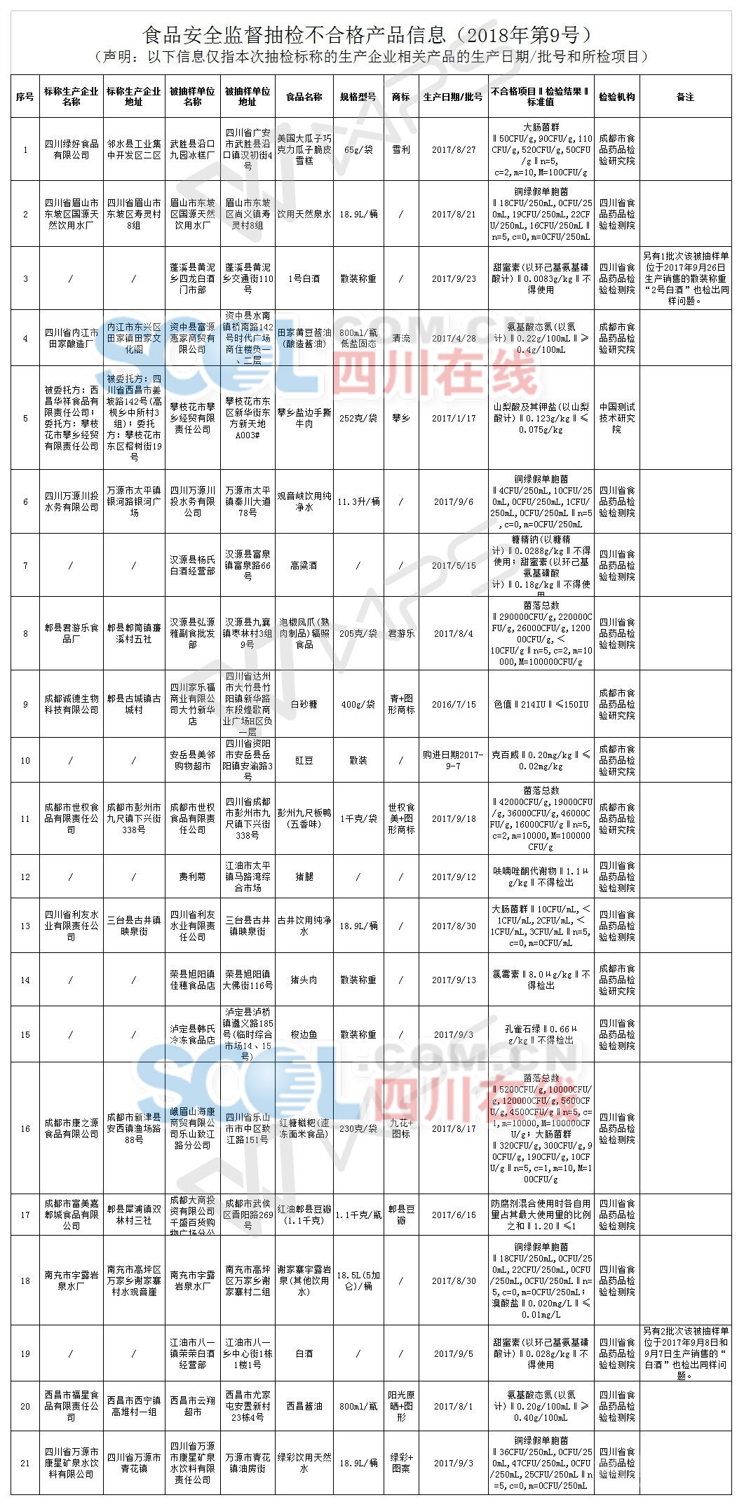 省食品藥品監(jiān)管局相關(guān)負(fù)責(zé)人表示,對上述監(jiān)督抽檢中發(fā)現(xiàn)的不合格產(chǎn)品,生產(chǎn)經(jīng)營者所在地食品藥品監(jiān)管部門已按相關(guān)規(guī)定開展核查處置,責(zé)令違法生產(chǎn)經(jīng)營者下架、召回不合格產(chǎn)品,徹查問題原因并全面整改,并責(zé)令成都、自貢、攀枝花、綿陽、遂寧、內(nèi)江、樂山、南充、廣安、達(dá)州、雅安、眉山、資陽、甘孜、涼山市(州)食品藥品監(jiān)管部門應(yīng)在2018年5月22日前向省食品藥品監(jiān)督管理局報(bào)告核查處置情況并向社會(huì)公布。