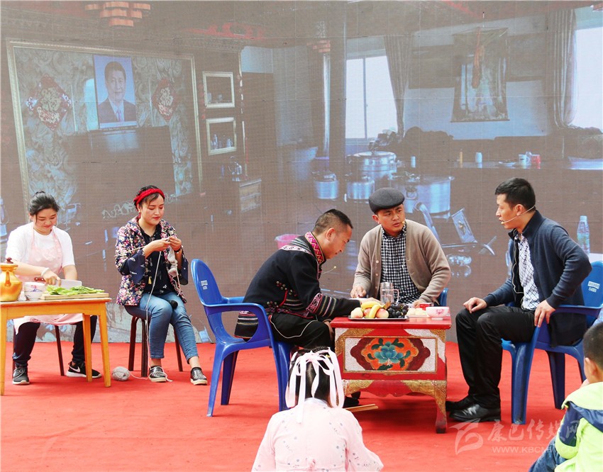 小品《我們的生活充滿陽(yáng)光》、《我們的第一老書(shū)記》和情景劇《我要入黨》,對(duì)近年來(lái),全州在州委的堅(jiān)強(qiáng)領(lǐng)導(dǎo)下,在州人大常委會(huì)、州政府和州政協(xié)的齊心協(xié)力狠抓落實(shí)工作下,呈現(xiàn)出全州脫貧攻堅(jiān)戰(zhàn)中,貧困地區(qū)所發(fā)生可喜變化。《我們的生活充滿陽(yáng)光》反映了貧困家庭走向富裕后,記者采訪時(shí)所看到真實(shí)情況;《我們的第一老書(shū)記》真實(shí)再現(xiàn)一位近60多歲的人大機(jī)關(guān)派駐村第一書(shū)記,在忙碌地工作中,不顧妻子的反對(duì)仍然帶病堅(jiān)持工作,為村干部樹(shù)立了榜樣,并得到了妻子的理解和支持;《我要入黨》反映的是一位50多歲老同志,得知如果不是黨員,是不能當(dāng)駐村第一書(shū)記時(shí),他不顧家人反對(duì)和相關(guān)部門的勸阻,在經(jīng)過(guò)參加入黨積極分子培訓(xùn)后,最終如愿以償舉起了右手。精彩的演出,把活動(dòng)再次推向了高潮。