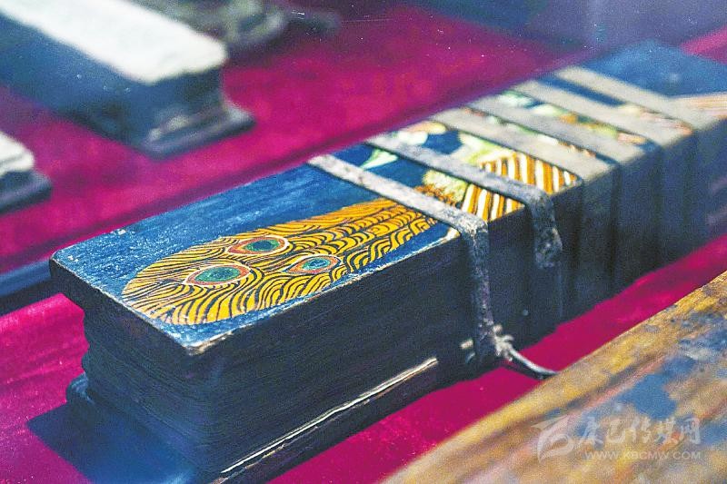 在展覽現(xiàn)場(chǎng),擺放著一些格薩爾的藏文文獻(xiàn)資料,與傳統(tǒng)漢語古籍裝幀不同,藏文典籍主要采用梵夾裝形式,俗稱長(zhǎng)條本。此次展出的包括格薩爾梵夾裝的手抄本、伏藏本、木刻本以及近六十年來正式出版的各種圖書等等,囊括了數(shù)百部格薩爾王史詩。