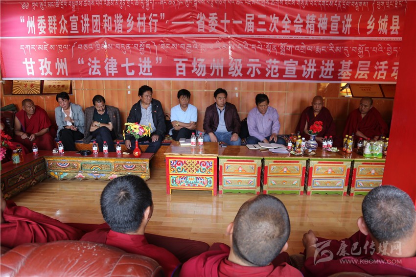 7月27日至28日,州委宣講團共在雅江舉行了4場省委十一屆三次全會精神宣講,覆蓋干部群眾和寺廟僧侶400余人。謝臣仁 記者 劉小兵 見習記者 包小玉