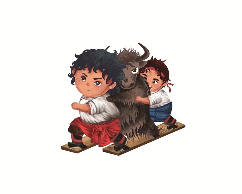 據(jù)悉,該卡通形象由康巴文化研究院設計,最早出現(xiàn)在去年的環(huán)貢嘎山百公里越野挑戰(zhàn)賽上,在各國越野高手云集的賽場上,一名身著傳統(tǒng)服飾的小藏娃牽著牦牛奔跑的形象令人過目不忘。而此次省民運會將繼續(xù)沿用“小藏娃和牦牛洛洛的形象”,康巴文化研究院組織專人設計,按照既生動可愛又準確把握運動項目特征的要求,將此次運動會中的蹴球、陀螺、射弩、高腳競速、板鞋競速、押加、珍珠球、民族式摔跤等8個競賽項目以卡通形象展現(xiàn)。