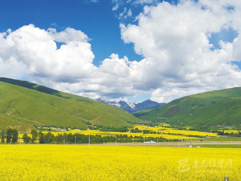 成都市郫都區(qū)對(duì)口援建的甘孜州道孚縣協(xié)德鄉(xiāng)萬畝油菜基地一片生機(jī)盎然。 陳凱 攝