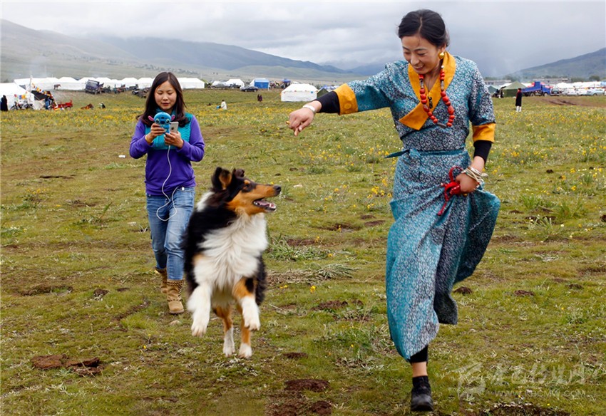 稻城游客“相映成群”。