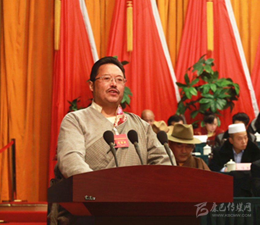 阿基布珠受十三屆州政協(xié)常務(wù)委員會(huì)委托,向大會(huì)作《政協(xié)甘孜州第十三屆委員會(huì)常務(wù)委員會(huì)關(guān)于十三屆二次會(huì)議以來(lái)提案工作情況的報(bào)告》。