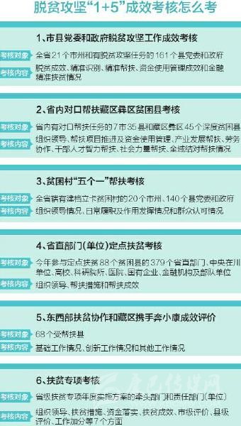 如何考?省扶貧開發(fā)局相關(guān)負(fù)責(zé)人介紹,具體而言,就是將黨委和政府脫貧攻堅工作成效考核、省直部門(單位)定點(diǎn)扶貧考核、扶貧專項考核、省內(nèi)對口幫扶藏區(qū)彝區(qū)貧困縣考核、貧困村“五個一”幫扶考核、東西部扶貧協(xié)作和藏區(qū)攜手奔小康成效評價統(tǒng)一整合為脫貧攻堅成效考核,一支隊伍完成所有考核。