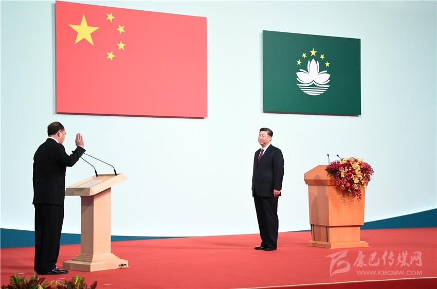 慶祝澳門回歸祖國20周年大會暨澳門特別行政區(qū)第五屆政府就職典禮20日上午在澳門東亞運(yùn)動會體育館隆重舉行。中共中央總書記、國家主席、中央軍委主席習(xí)近平出席并發(fā)表重要講話。他指出,澳門回歸祖國20年來,澳門特別行政區(qū)政府和社會各界人士同心協(xié)力,開創(chuàng)了澳門歷史上最好的發(fā)展局面,譜寫了具有澳門特色的“一國兩制”成功實(shí)踐的華彩篇章。他希望澳門特別行政區(qū)新一屆政府和社會各界人士站高望遠(yuǎn)、居安思危,守正創(chuàng)新、務(wù)實(shí)有為,在已有成就的基礎(chǔ)上推動澳門特別行政區(qū)各項(xiàng)建設(shè)事業(yè)躍上新臺階。