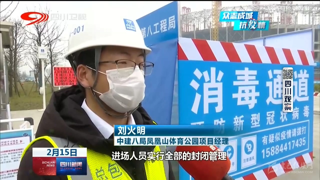 中建三局樂山市奧林匹克中心建設(shè)項目總工程師 董萬龍:“我們盡可能把我們的施工人員分散,不要聚集,對內(nèi)我們做好防控物資的保障,口罩、消毒水以及酒精這些防疫物資已經(jīng)齊全?!?/p>