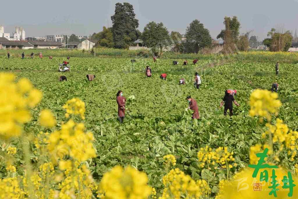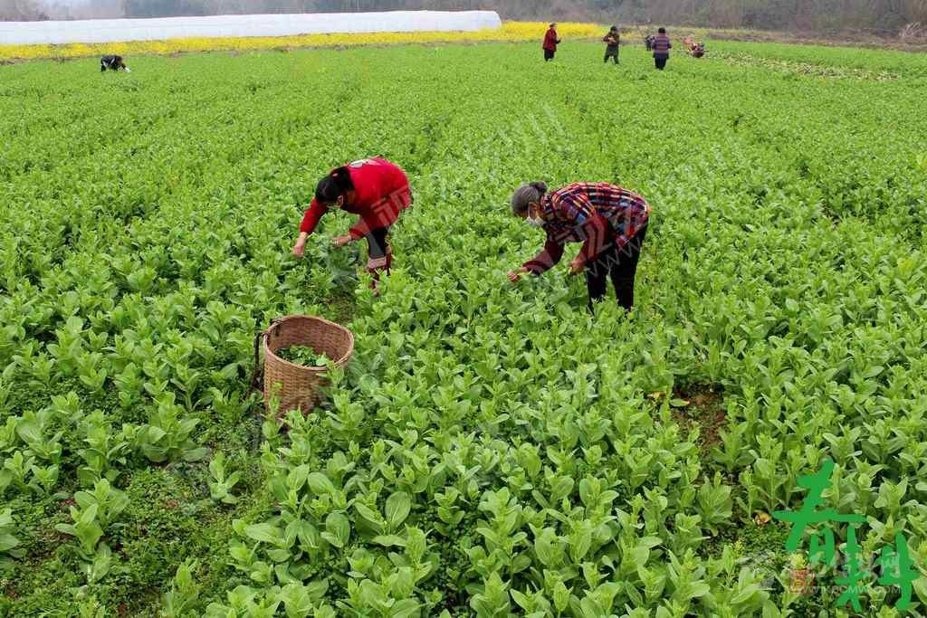 綿竹市紫巖街道雙坪村5組,當(dāng)?shù)剞r(nóng)戶(hù)在天佑家庭農(nóng)場(chǎng)收割青菜,以便騰地后用于水稻生產(chǎn)。