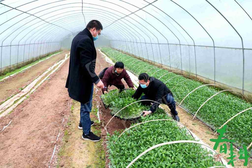 廣安市廣安區(qū)信訪(fǎng)局幫扶黨員干部正在悅來(lái)鎮(zhèn)大棚蔬菜育苗基地起海椒苗。