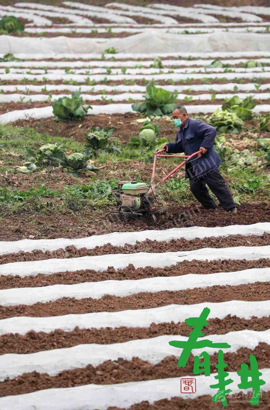 廣安市廣安區(qū)大龍鎮(zhèn)光明村村民在甘藍(lán)地里春管除草。