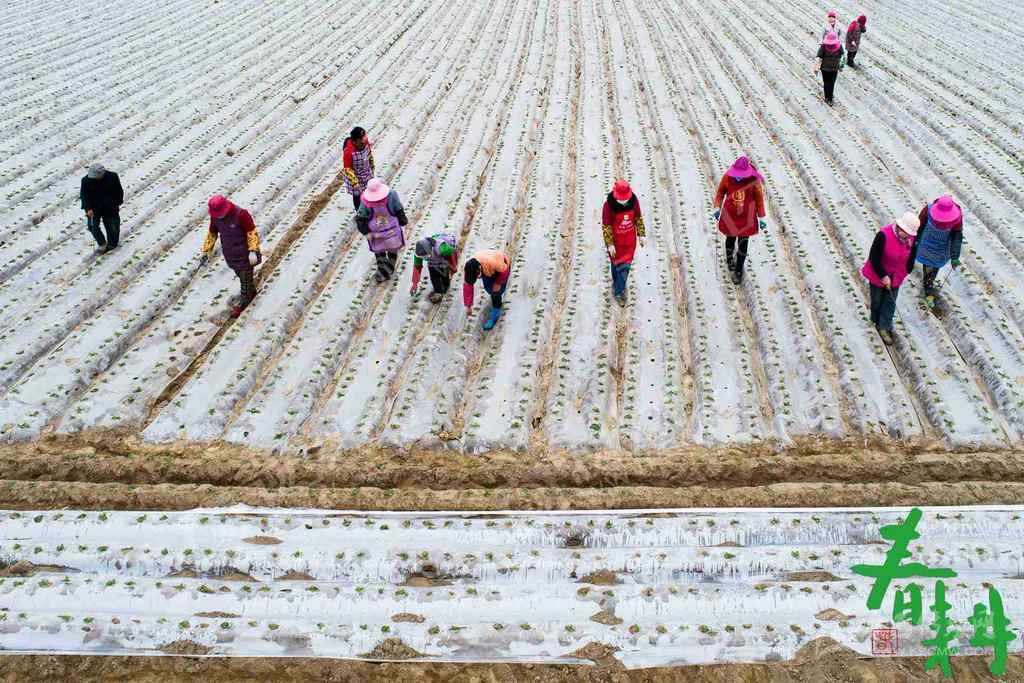 閬中市彭城鎮(zhèn)五谷臺(tái)村,村民在精心管護(hù)蔬菜,把菜苗從薄膜里“掏出來(lái)”。