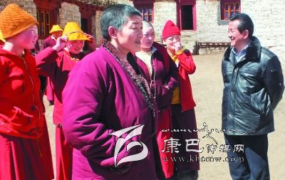 在雅江縣委、縣人大常委會主要領導及統(tǒng)戰(zhàn)、宗教部門的陪同下,李康來到距縣城90多公里的雅江縣紅龍鄉(xiāng)158k覺姆寺,同寺管會成員和部分僧尼進行座談。他詳細了解寺廟的基本情況,仔細詢問僧尼的生產生活和寺廟佛事活動開展情況,認真傾聽僧尼的反映和訴求,對僧尼提出的困難和問題詳細記錄,認真答復,耐心細致地講解宣傳黨的民族宗教和惠寺惠僧政策。座談會上,李康主任簡短的開場白很快拉近了大家的距離,他說,這次專門到寺廟的目的就是看望大家,建立聯系,了解情況,收集問題,希望大家暢所欲言,互相溝通,加強交流,增進了解,共同推進寺廟的健康有序發(fā)展。當他了解到該寺的水、電問題在縣委、政府的關心重視下,今年即將得到解決時,他說,州、縣黨委、政府歷來十分關心寺廟的基礎設施建設和廣大僧尼的生產生活、健康醫(yī)療等問題,寺廟的水電、道路、通信等基礎設施始終得到了黨委、政府的關心支持,僧尼的醫(yī)保、養(yǎng)老和最低生活保障等生活保障措施正在全州寺廟全面覆蓋。對寺廟的其他困難和問題,州、縣將積極協(xié)調,盡快解決。他強調指出,158k覺姆寺近年來通過縣委、政府綜合施策,強化教育,規(guī)范管理,寺廟整體情況良好,步入了依法管理的良性軌道。他講到,我們黨的民族宗教政策是長期的、一貫的,寺廟作為基本社會單元,僧尼作為普通公民和基本群眾,要自覺接受當地黨委、政府依法管理,維護祖國統(tǒng)一、民族團結和法制尊嚴,推動宗教與社會主義社會相適應,與現代文明進程相協(xié)調,積極投入全州發(fā)展中來,共同建設好我們的和諧幸福家園。任何寺廟只要服從當地黨委、政府的管理,認真貫徹落實好藏傳佛教的各項管理規(guī)定,真正發(fā)揮好宗教的正面積極作用,寺廟才會得到黨委、政府更多的關心支持,才會得到更好的健康發(fā)展。他希望158k覺姆寺要依法加強宗教事務的管理,深入貫徹落實《甘孜州藏傳佛教事務條例實施細則》,促進依法治寺、規(guī)范管寺,為維護正常宗教秩序、服務經濟社會發(fā)展、促進社會和諧穩(wěn)定做出積極貢獻。