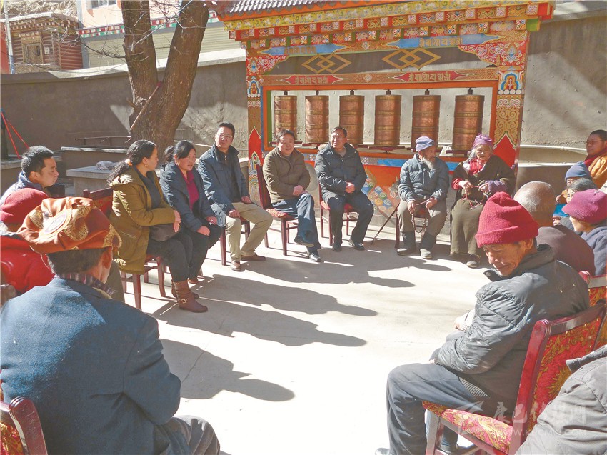 在示范創(chuàng)建中,甘孜把民族團結(jié)進步創(chuàng)建“八進”作為重要抓手和載體,即進機關(guān)、進鄉(xiāng)鎮(zhèn)、進村(社區(qū))、進企業(yè)、進學(xué)校、進寺院、進軍營、進市場。近年來,各縣(市)創(chuàng)建辦依據(jù)當(dāng)?shù)毓ぷ鲗嶋H、不同場所特點開展豐富多樣的主題宣傳教育活動,推動創(chuàng)建工作實現(xiàn)“橫、縱、深、廣”,形成了各級黨委、政府以及各部門、全社會參與示范創(chuàng)建的良好局面。
