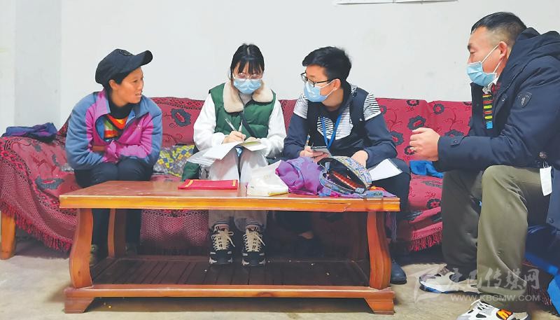10月28日,喜德縣評(píng)估檢查隊(duì)隊(duì)員(右邊兩位)入戶調(diào)查。 四川日報(bào)全媒體記者 王代強(qiáng) 攝