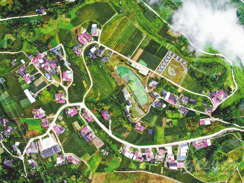 2020年8月17日海子坪村航拍。甘孜州瀘定縣海子坪村打造的“高科農技+高端民宿”吸引了眾多游客前來觀光旅游,村民的生活也發(fā)生著美麗的蛻變。 四川日報全媒體記者衡昌輝攝